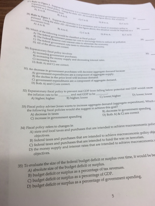 Solved: Expansionary Fiscal Policy Involves A) Increasing ...