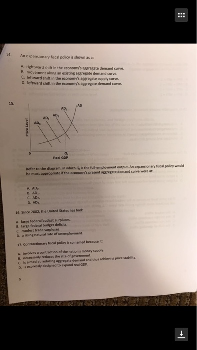 Solved: An Expansionary Fiscal Policy Is Shown As A: A. Ri ...