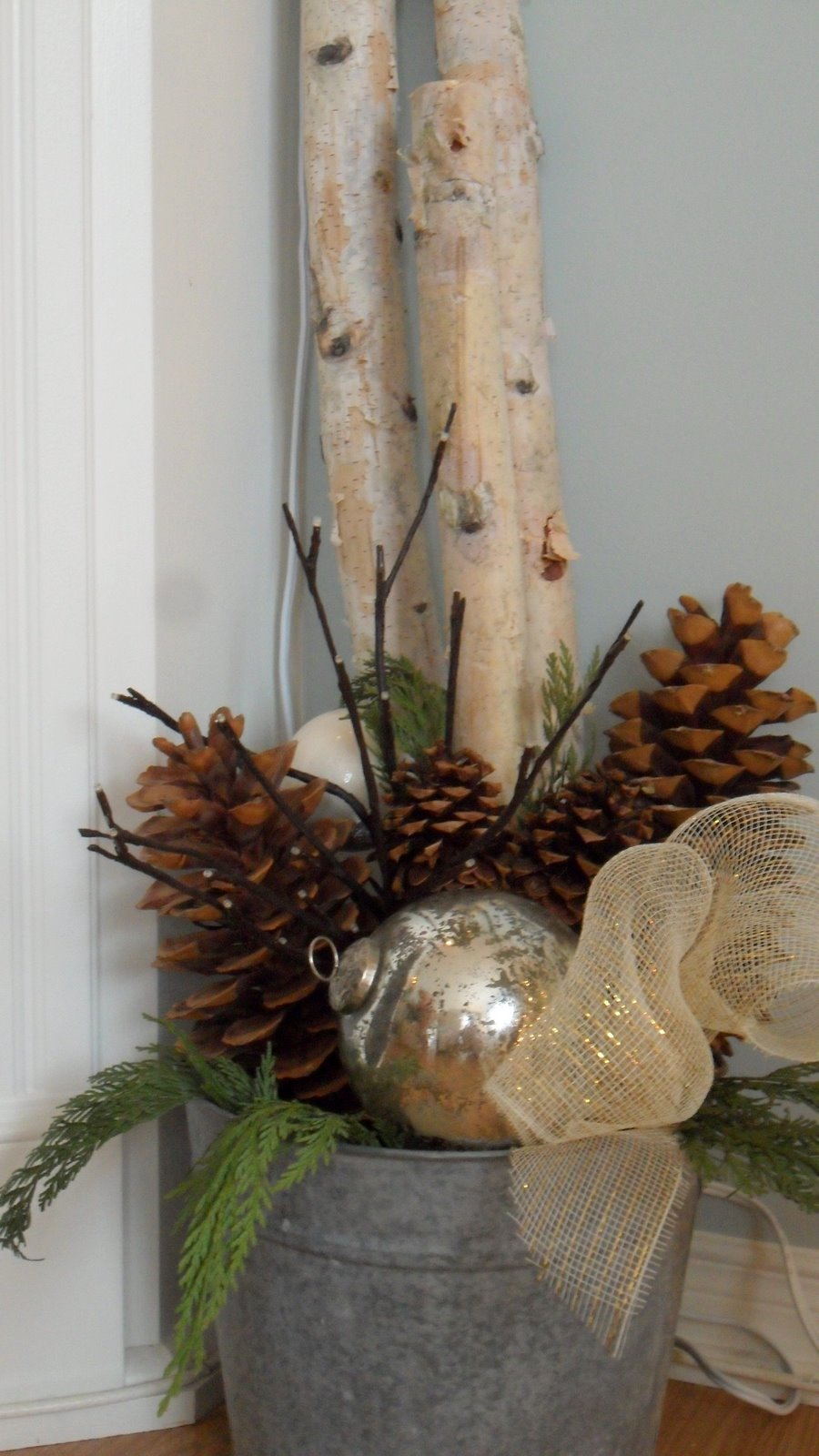 Birch branches bundled together makes a bold centerpiece Decorating With Birch Wood. Tip: Use a thick glass piece to keep it from tipping over. Should I wait for them to dry out some and what about critters?