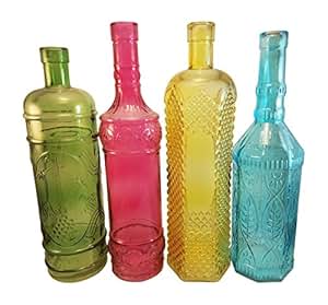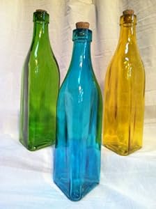 Featuring a translucent hue and a milk bottle shape, this bottle can be used as a vase, displayed independently, or paired with bottles in other colors for a perfectly coordinated look! This glass decorative bottle with lid has the message for the newlyweds printed in white on the front (silk-screened). Blue glass bottles are the perfect accent in a cottage by the beach, while those with a golden hue work well in a more formal space.