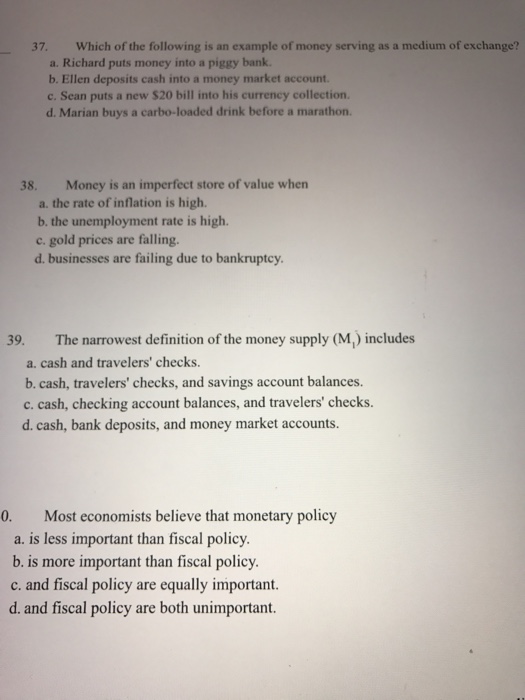 Solved: Which Of The Following Is An Example Of Money Serv ...