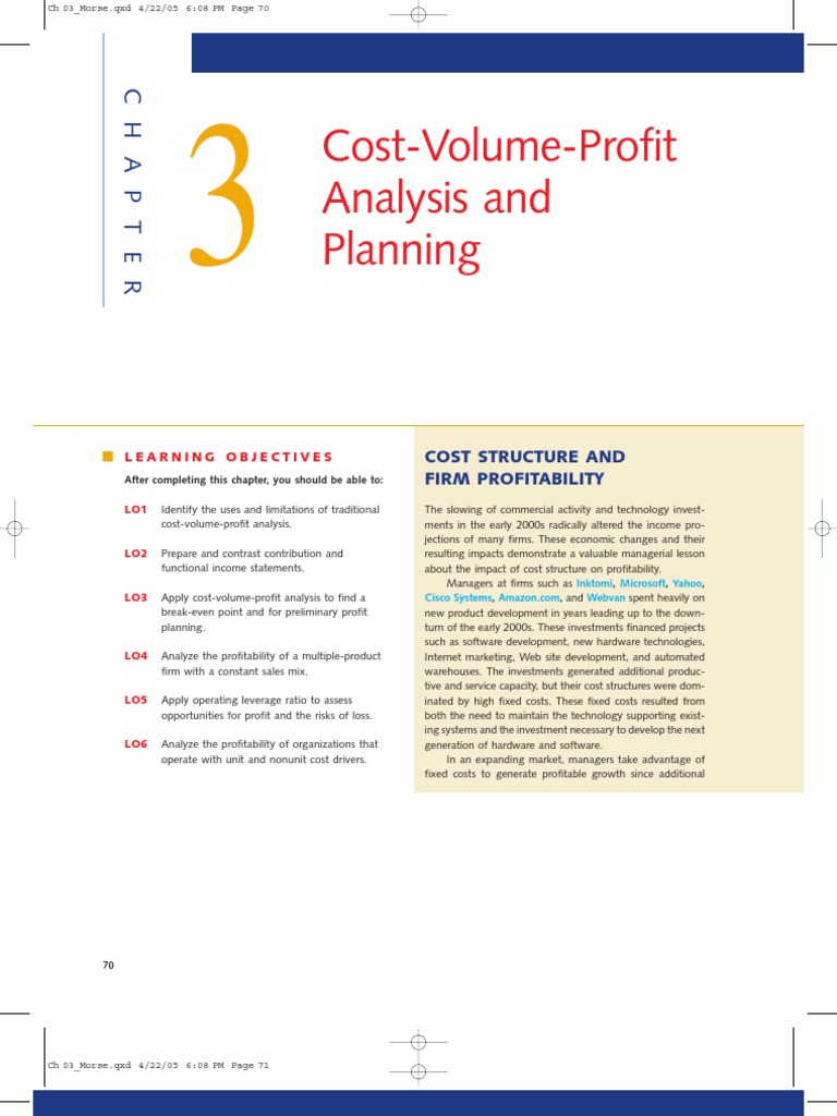 Chapter 3 – Cost-Volume-Profit Analysis and Pricing Decisions