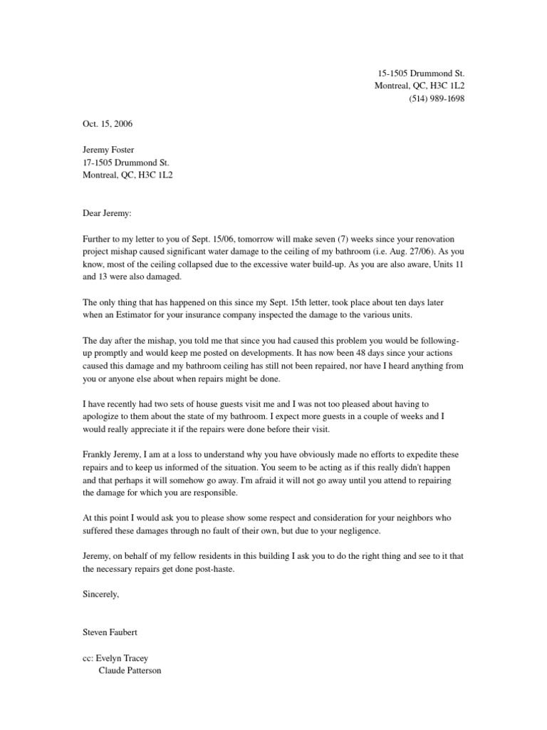 Ceiling Leakage Complaint Letter | www.Gradschoolfairs.com